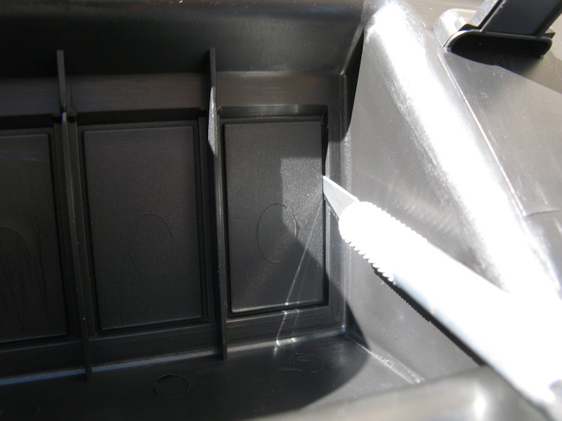 Carefully cut out the four holes for the switches - don't cut too much: