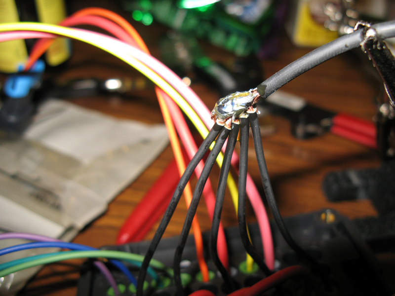 Combining all ground wires and starting to solder. Not pictured I ended up using a pencil torch to get enough heat for the solder the connection properly: