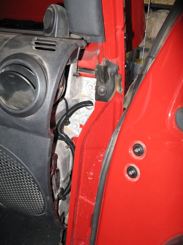 Installation of the switch wiring harness through the firewall:Carefully remove the passenger side panel: