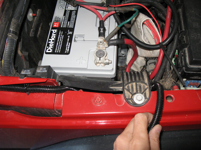 Connect the power wire to the fuse block and the bottom of the RTMR Panel. I put a rubber cap on the screw/bolt: