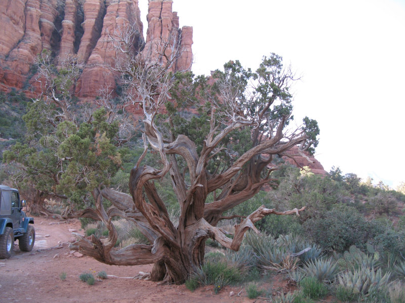 The Trail:Broken Arrow starts with a man made obstacle, which if you don't want to attempt then park your vehicle and walk the trail. There are a number of rocks to climb on and lockers are helpful but not required. The most difficult portion of the trail leads down the Steps. The "normal" route goes from parking lot, up Princess Rock (a number of cracks to play in here), down to Submarine Rock, up to Chicken Point, back down to Mushroom Rock and the Slide, and finally to the Steps. Many portions of the trail are not wide enough to support two Jeeps, so you may have to back-up to a turn out to let another vehicle drive past in the other direction. Rating:3.0 Runs:Date: 9/19/2008Suspension: TeraFlex 2.5" Spring Lift, stock tiresPhotos:In a crack at Princess Rock: