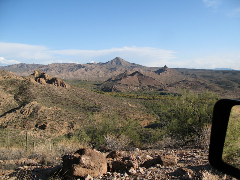 Out the left side you can see a band of trees in the valley - the Gila River: