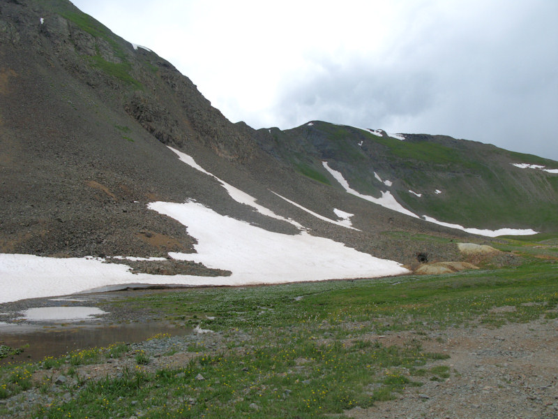 Heading back up and nearing Hurricane Pass. There's still some good snow up here: