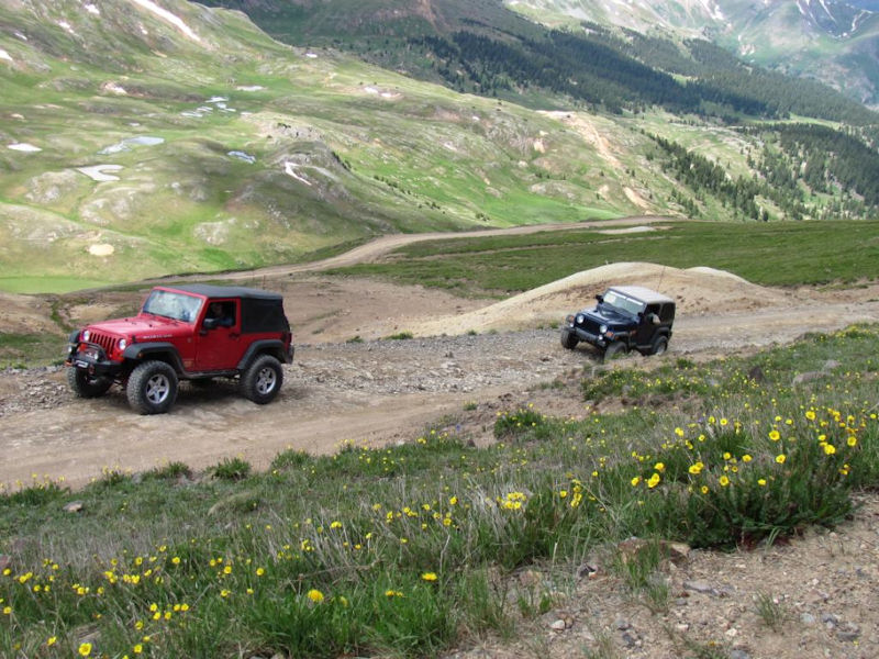 The Trail:Engineer Pass is a scenic trail that takes you to 12,800 feet and brings you down to Lake City. Along the way you'll have scenic vistas, waterfalls, and many mining towns and structures and historical information to view and explore. Rating:2.0 Runs:Date: 7/9/2010Suspension: TeraFlex 2.5" Spring Lift, BFG 35x12.50x17Photos:Start of the trail above the tree line: