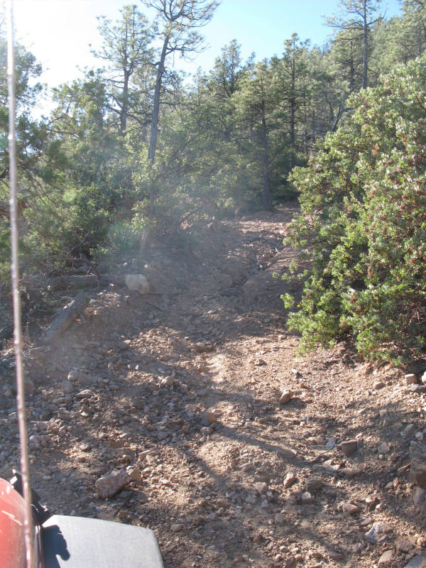 The Trail:We found this trail while we were out benchmarking. It's a little rough coming off 60, then turns into a nicely graded road, and then turns into a very rough road up to Madera Peak. We were hoping you could continue down FR 580 to FR 651, but not far past the peak we ran into a locked gate that blocked the road, so we had to head back the way we came. Rating:1.5 initially, 1.0 for the graded portion, and 3.0 for the final portion (lockers really helped on the steeper portions of the trail) Runs:Date: 11/14/2008Suspension: TeraFlex 2.5" Spring Lift, stock tiresPhotos:A view from the graded portion of the trail:
