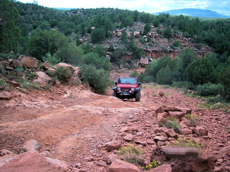 The Trail:Greasy Spoon, named after a nearby tank, is located in Sedona and runs from a well graded trail to a rocky steep trail that runs in and out of canyons. The difficult portion of the trail is named Diamondback (after the gulch). Running this portion of the trail from West to East adds to the difficulty since the climbs are harder West to East. Rating:3.0 Runs:Date: 8/30/2009Suspension: TeraFlex 2.5" Spring Lift, BFG 35x12.50x17Photos:The trail starts out flat and scenic: