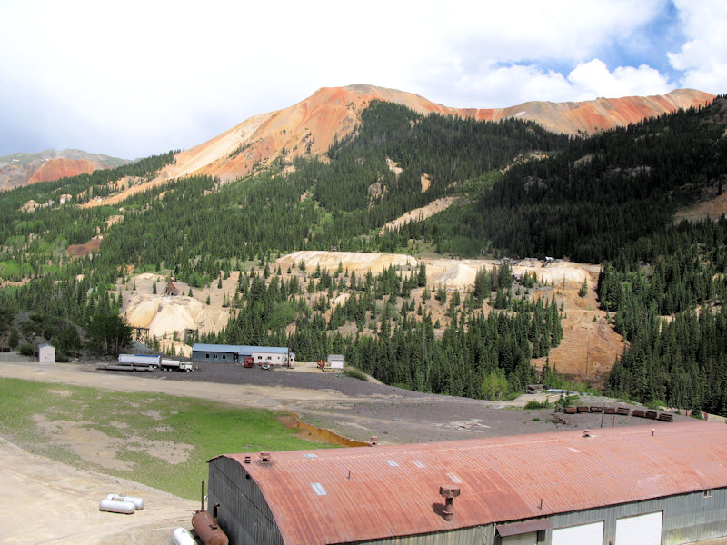 You can see tailings in the mountains: