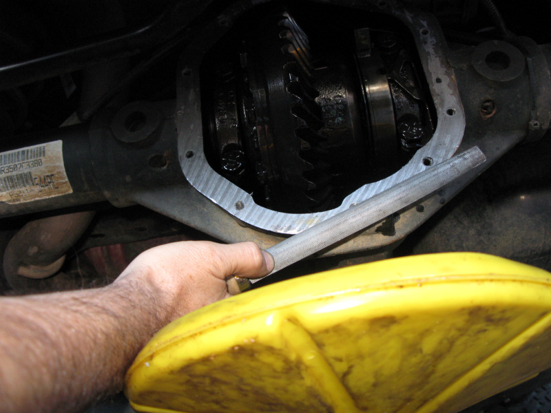 If you banged up the bottom of your diff (like me) you should file down the high spots so you get a better seal: