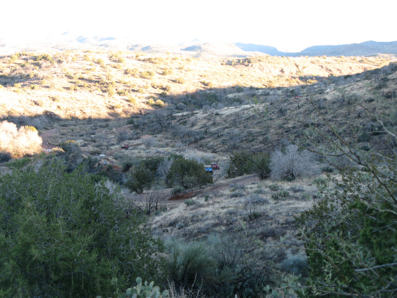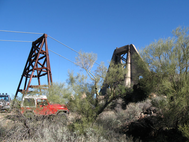 The Trail:There are a number of trails to get to Sheep Bridge. None are very difficult, but it will make for a long day. Rating:1.5 when dry, 2.0 when wet and muddy, 3.0 for the short trail down to the hot spring. Runs:Date: 12/28/2008Suspension: TeraFlex 2.5" Spring Lift, stock tiresPhotos:We joined the Central Arizona Jeepers on a ride to Sheep Bridge from Bloody Basin Road. The trip included a stop for lunch along Tangle Creek, exploring Sheep Bridge and some Benchmarking. Heading out. Here the road is well graded and wide: