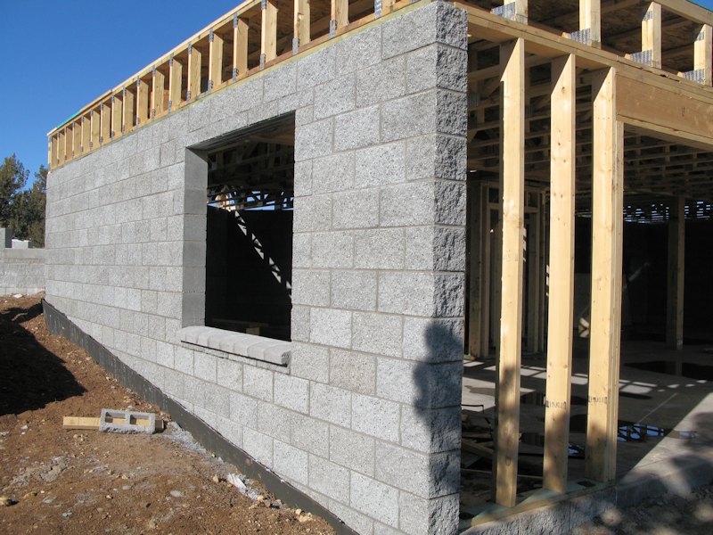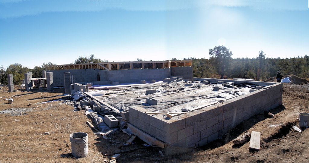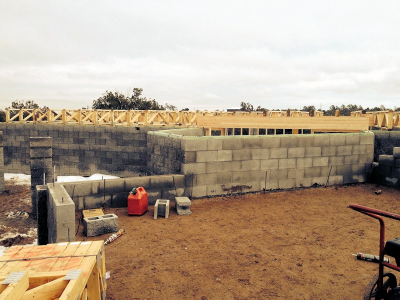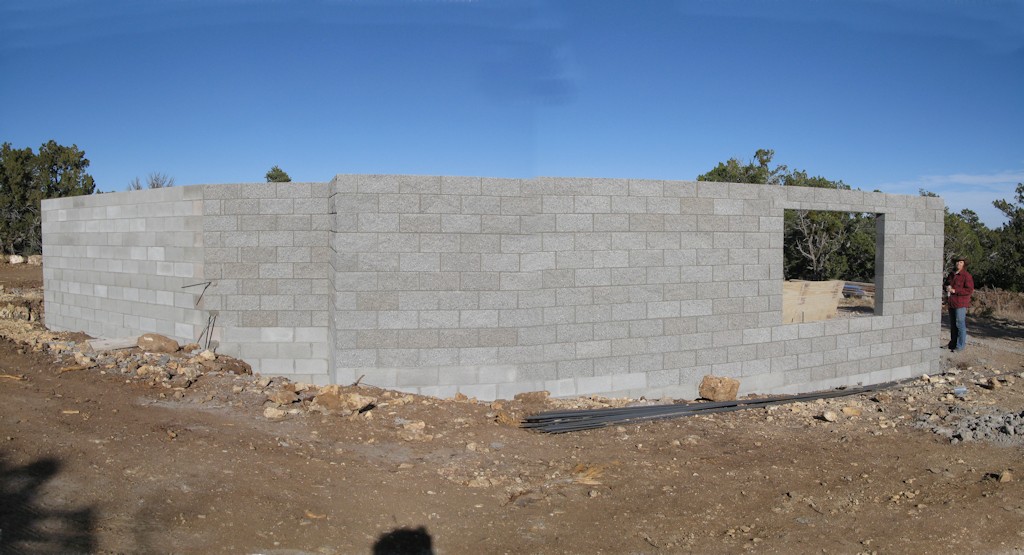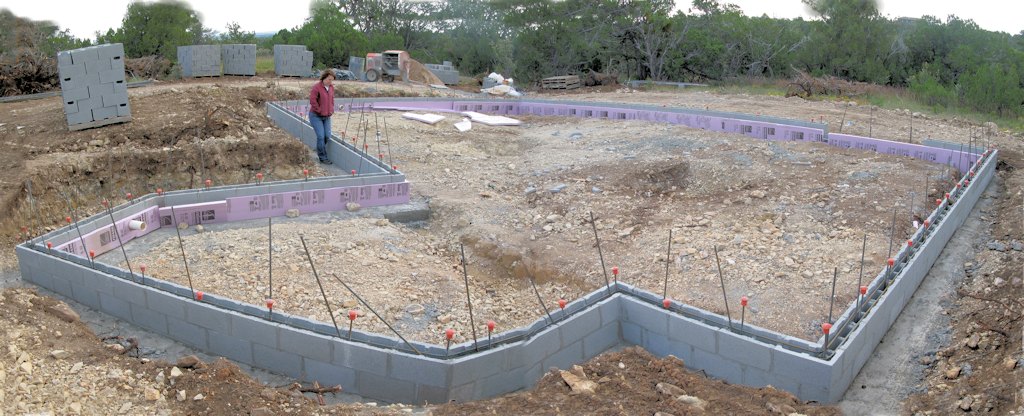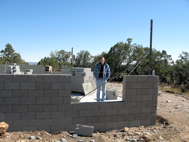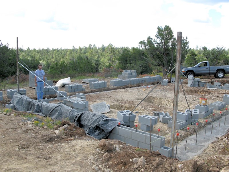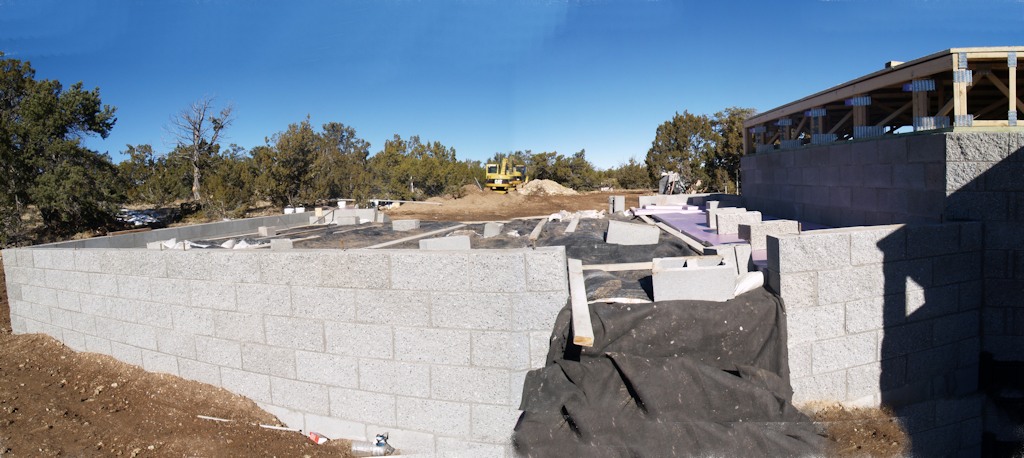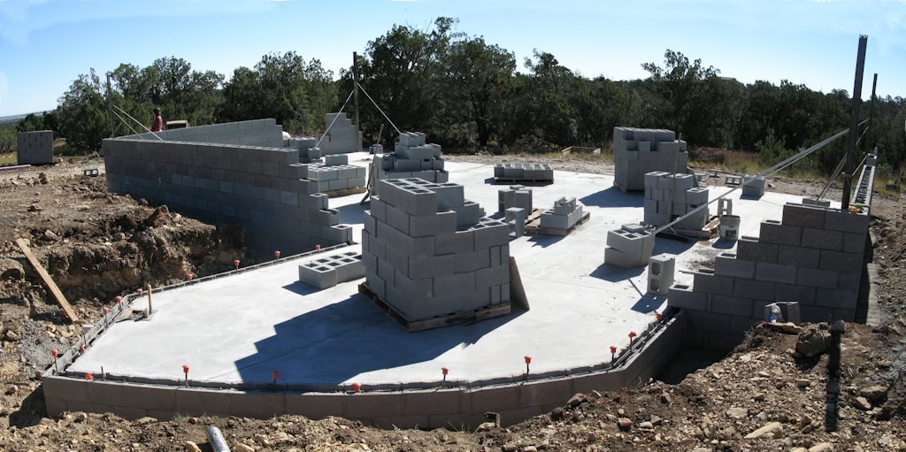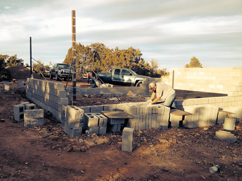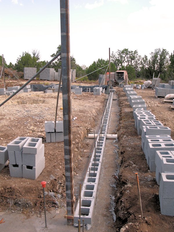 Down at the home site standing near the dining room corner - they started laying block on the footings: