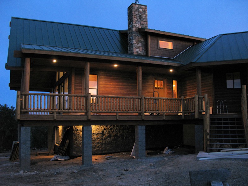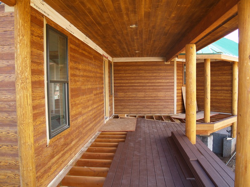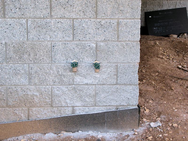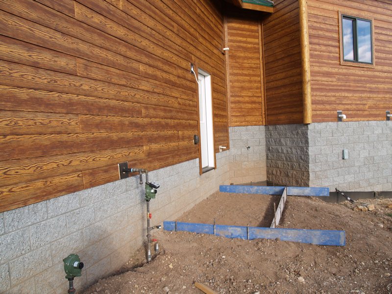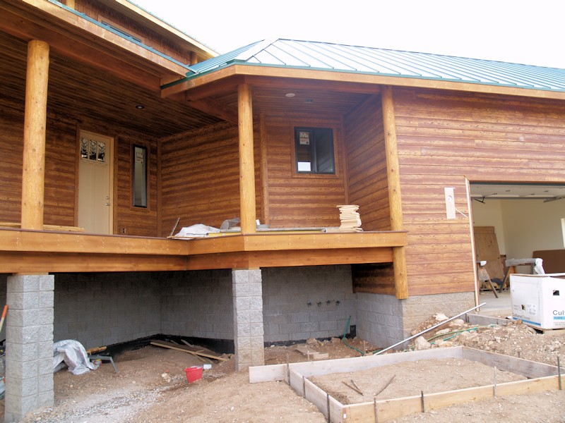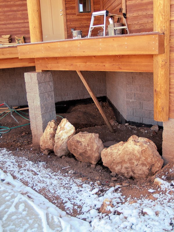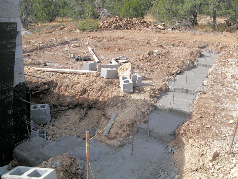 From the front of the house at the family room corner, you can see some of the footers for the deck in the front and side: