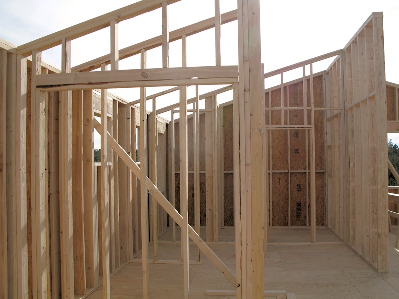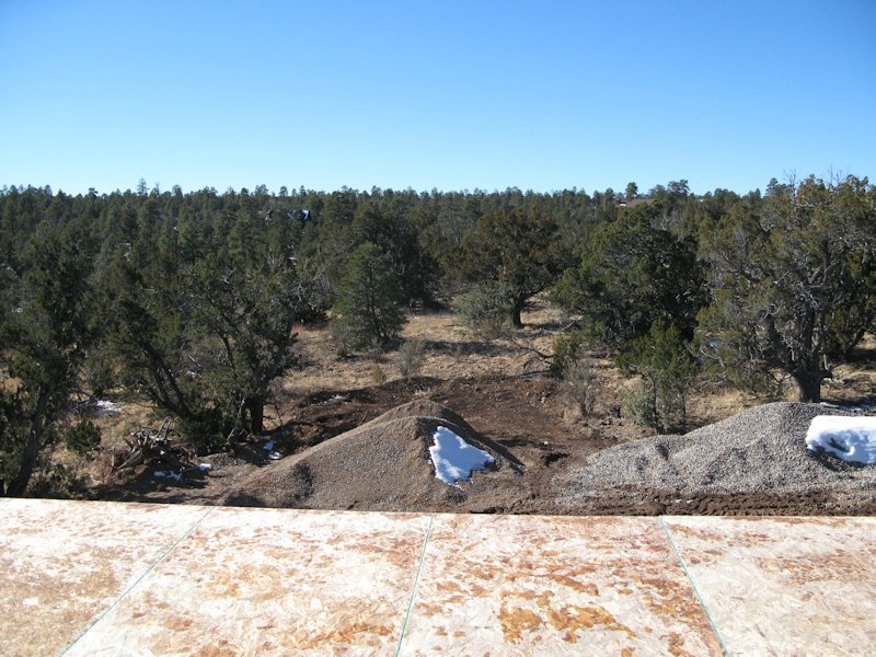 wood to the left is where the garage will be located and the pile of wood