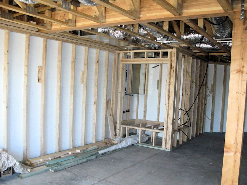 10/28/13 - The back wall of the basement is open, but the other walls are done: