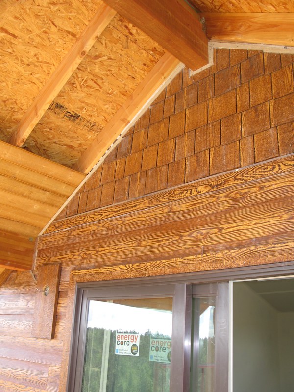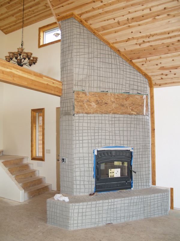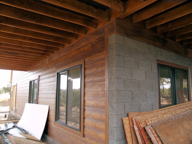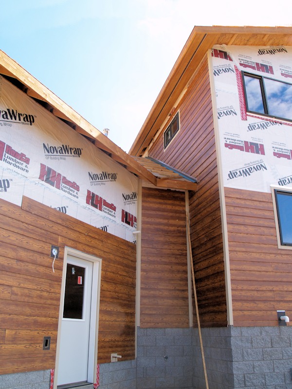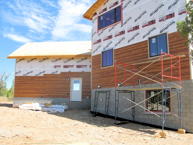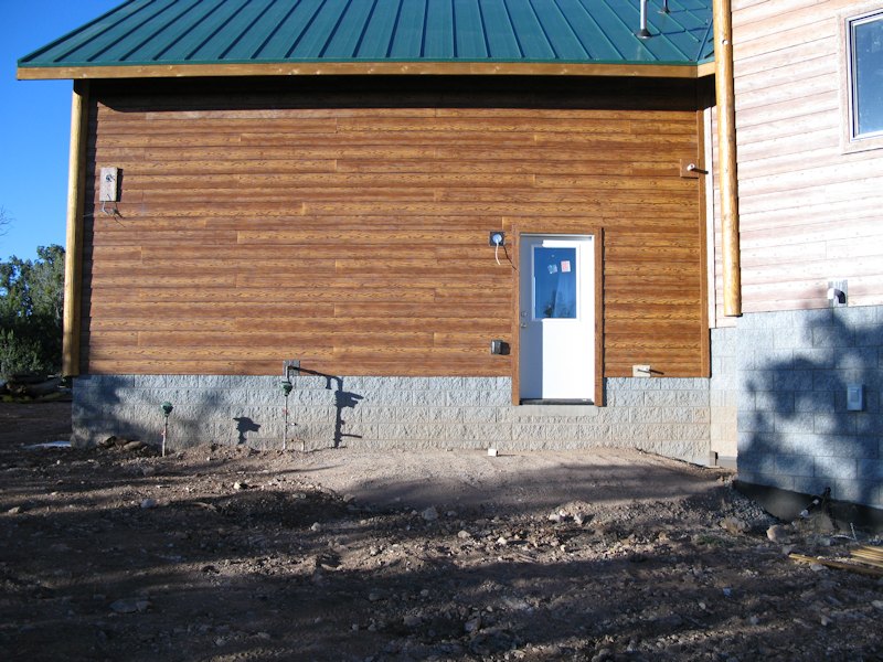 The back wall of the basement will be wood and stucco: