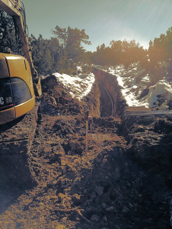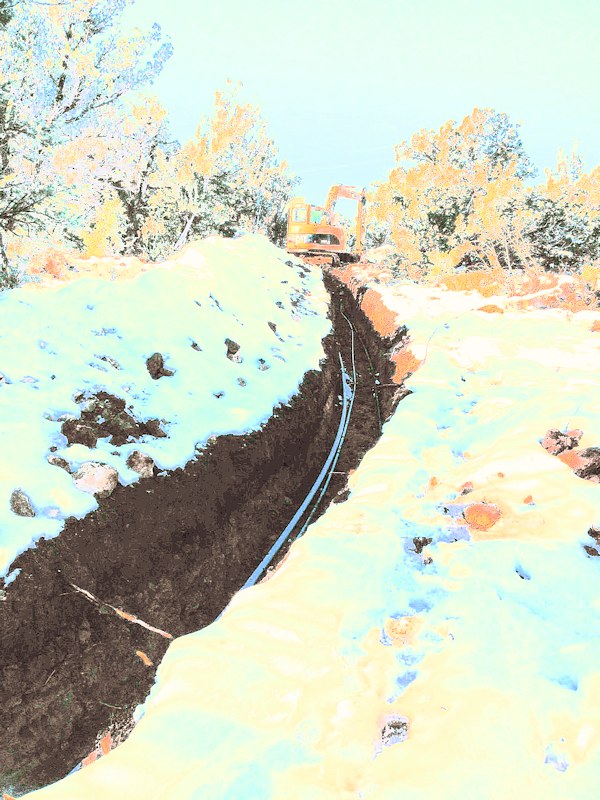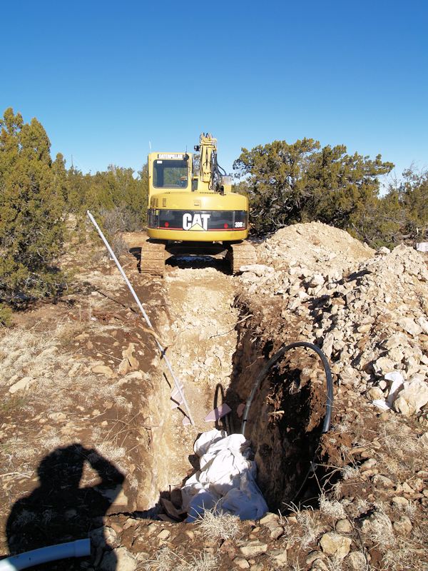 Working on the four foot deep trench that runs from the street to the house.
