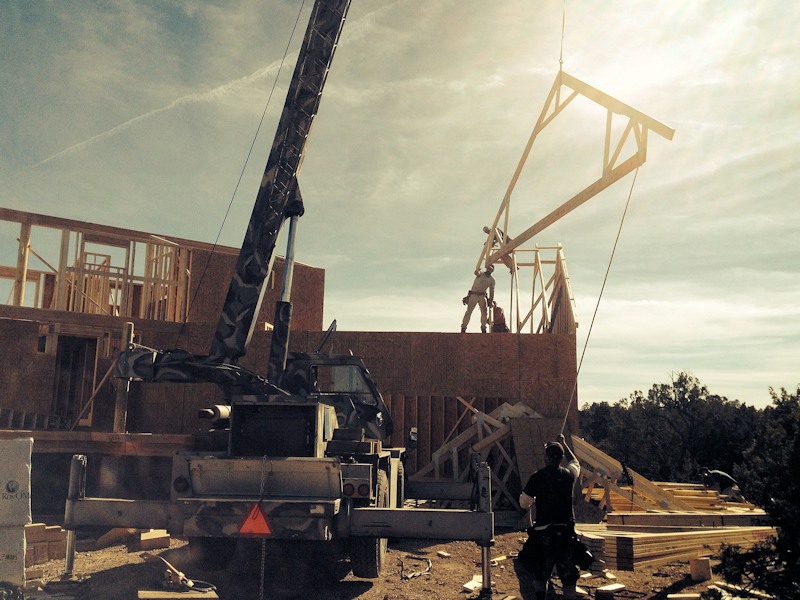 The custom truss work that will be placed on the basement masonry to support the first and second floors: