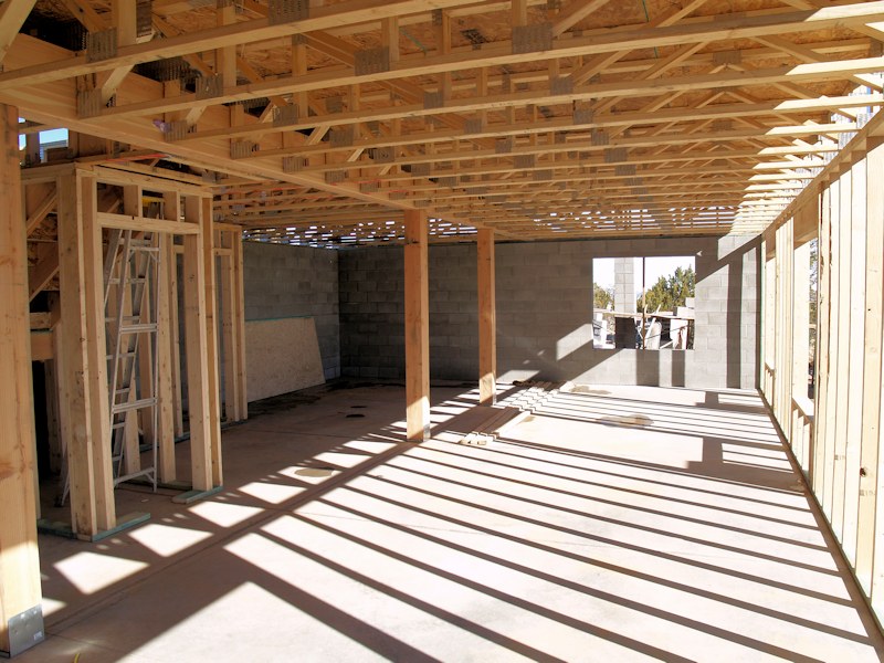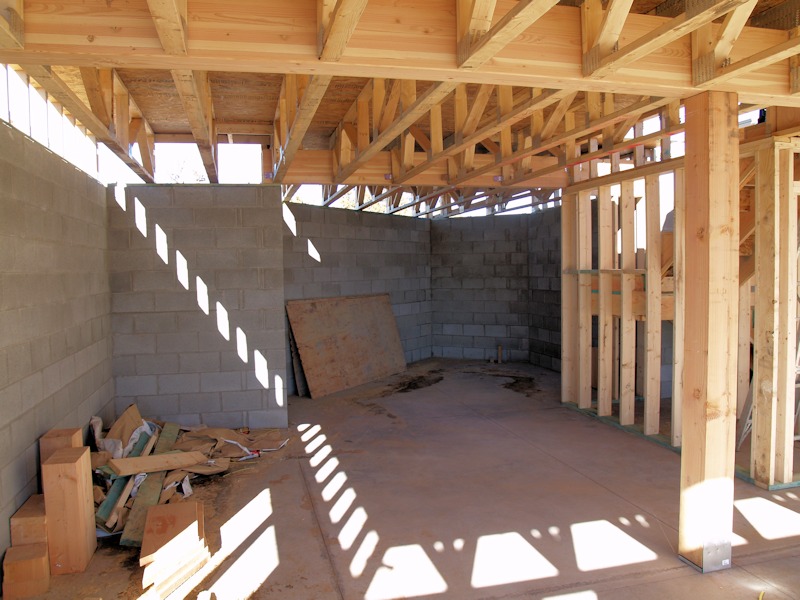 Looking toward the deck and arched roof over the living room and dining rooms will be here: