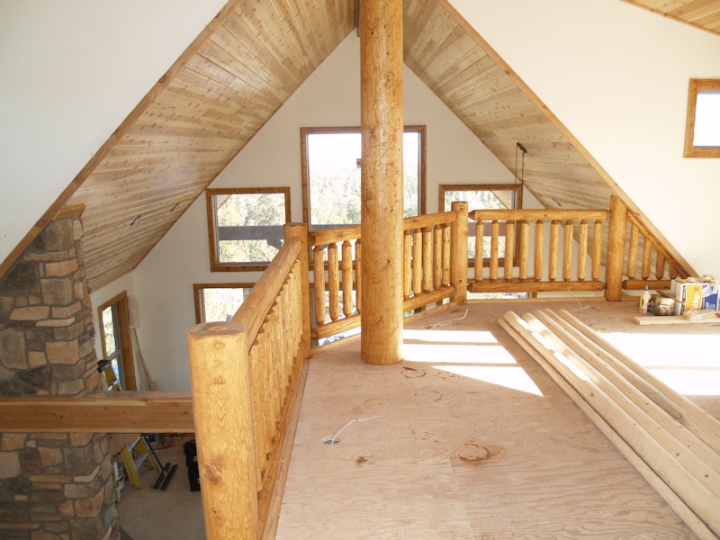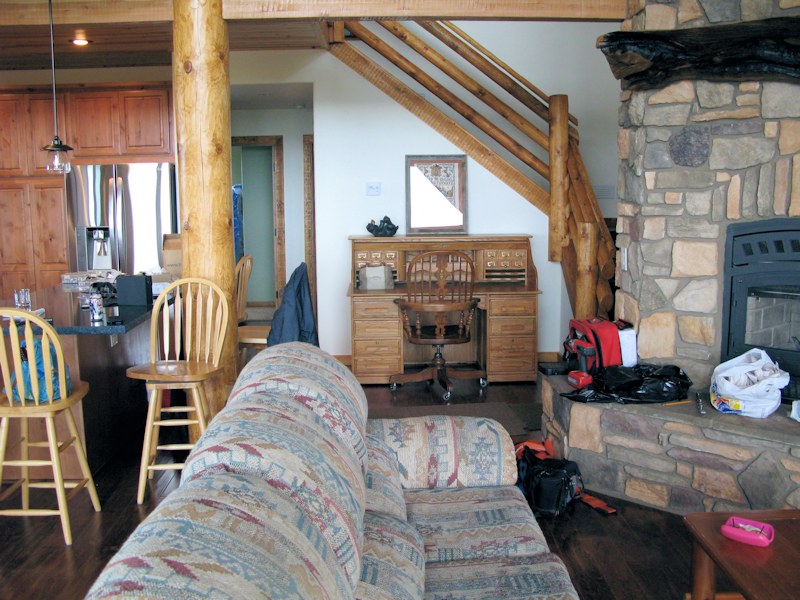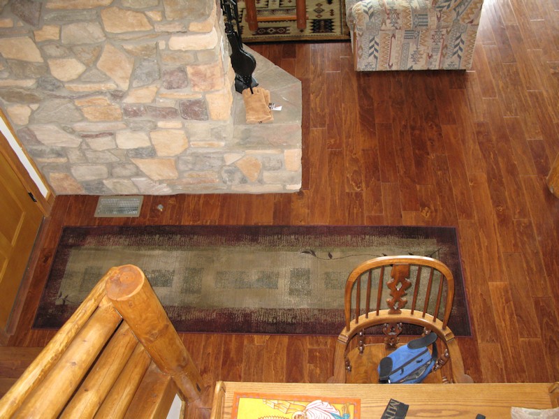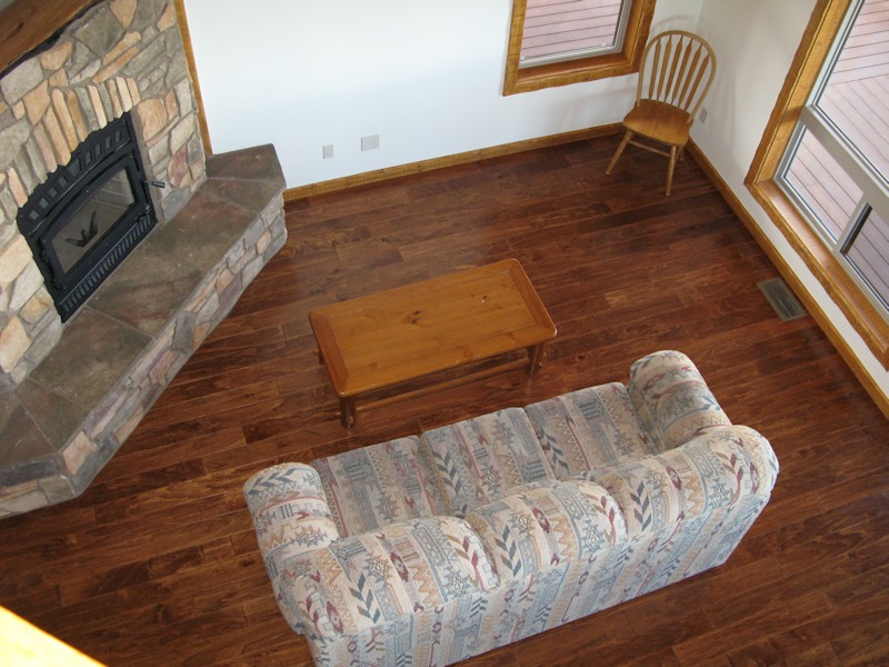 Looking down at the living room from the loft: