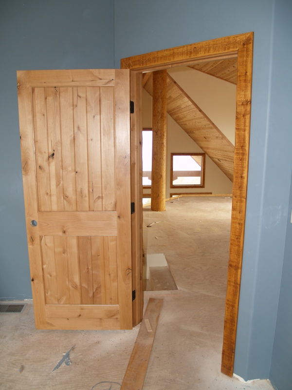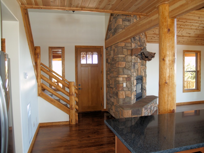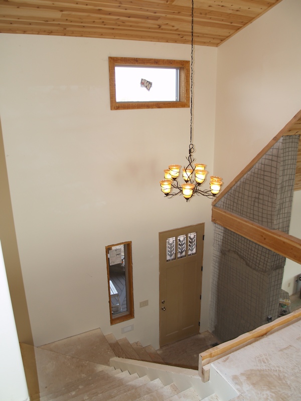 Looking down at the front door from the loft:
