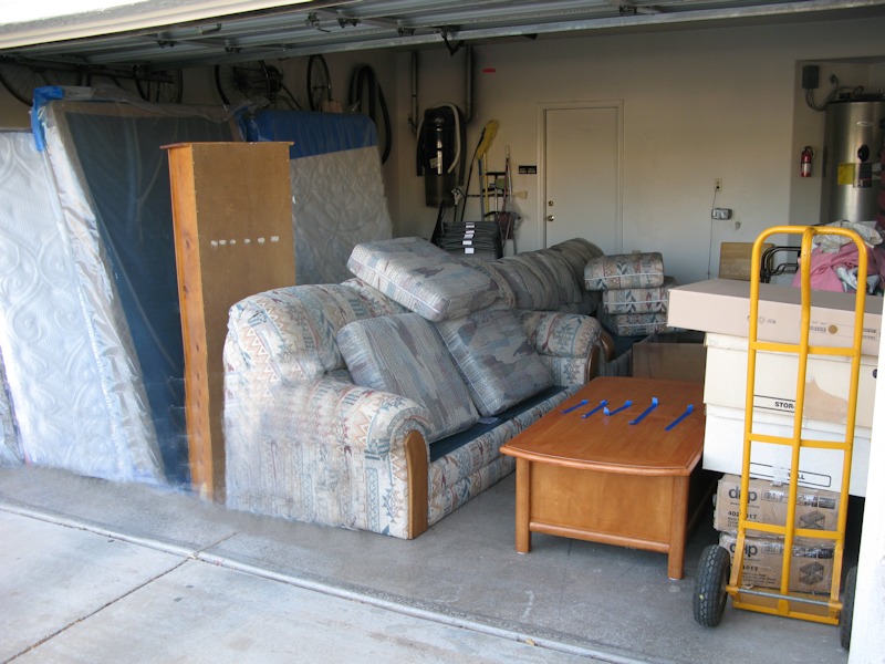 4/30/15 - The house is done so stage the Craig's List furniture in the garage: