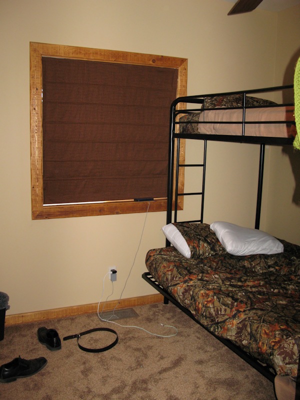 Brown room that has the bunk beds: