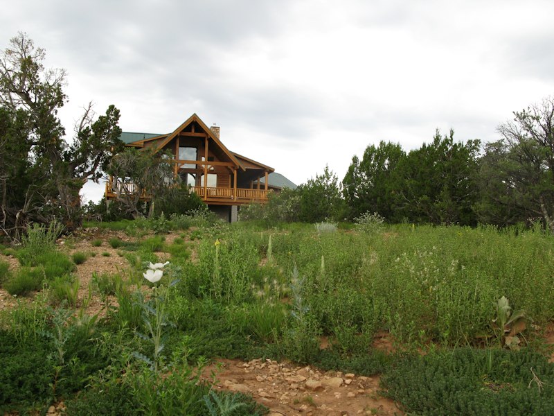 Looking at the cabin from the leach field: