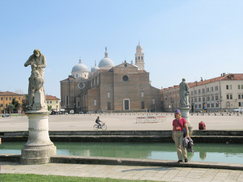 Looking back toward the Basilica of St. Giustina. Note the statue on the left - that's gotta hurt: