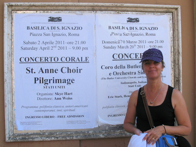In 2010 Jane's choir director Ann Weiss wanted to arrange a trip in 2011 to Italy where the choir could sing at Mass and perform for the local Italian populace. There would also be time to tour many cities and sites. In March and April Jane sang with the choir and Joe joined the others in the group in Italy.