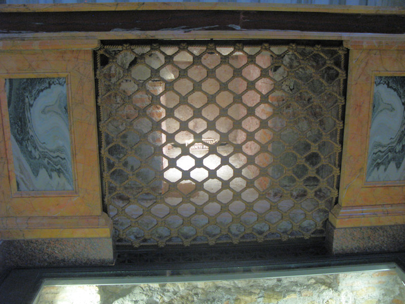 The old cage of Saint Luke - it hold remnants of his coffin: